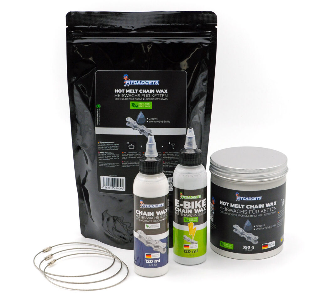 Mit der Fitgadgets Heißwachsdose und den passenden Kettenhaltern wird Heißwachsen einfach und kontrolliert. Kein Umfüllen, kein Schmutz, kein unnötiger Aufwand. Das Zubehör ist praxisnah entwickelt und macht professionelle Kettenpflege auch zu Hause möglich.