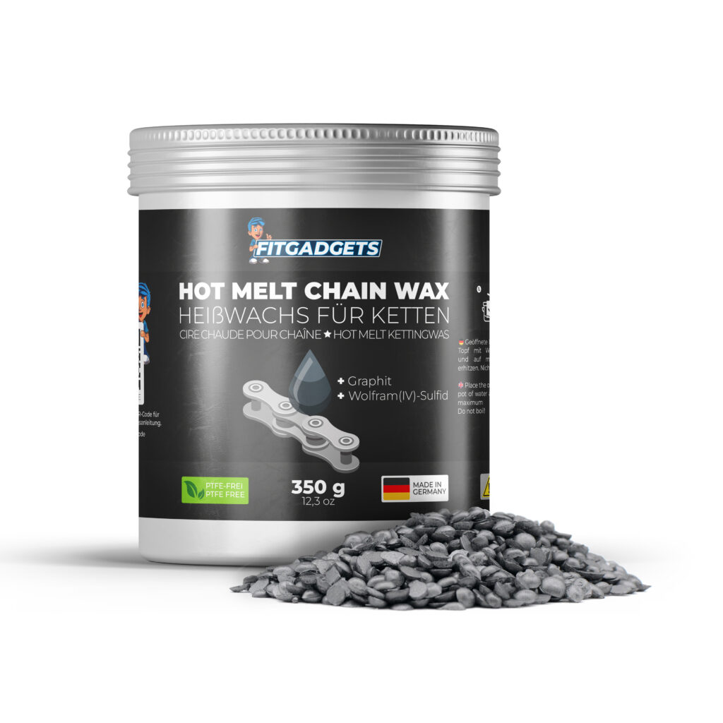 Für ambitionierte FahrerInnen bietet Fitgadgets Hot Melt Chain Wax eine besonders effektive Form der Kettenpflege. Durch das Heißwachsen gelangt das Wachs tief in die Kettenglieder und reduziert Reibung deutlich. Das Ergebnis ist ein extrem leiser Lauf, ein sauberer Antrieb und eine messbar längere Lebensdauer der Komponenten.