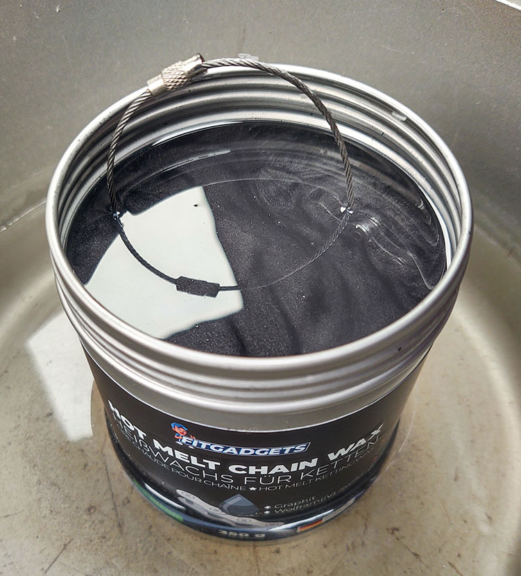 Durch die vollständige Versiegelung der Kette im geschmolzenen Wachs werden alle Kontaktflächen gleichmäßig benetzt. Nach dem Abkühlen entsteht ein stabiler, reibungsarmer Wachsfilm, der unter realen Fahrbedingungen nachweislich effizient arbeitet.